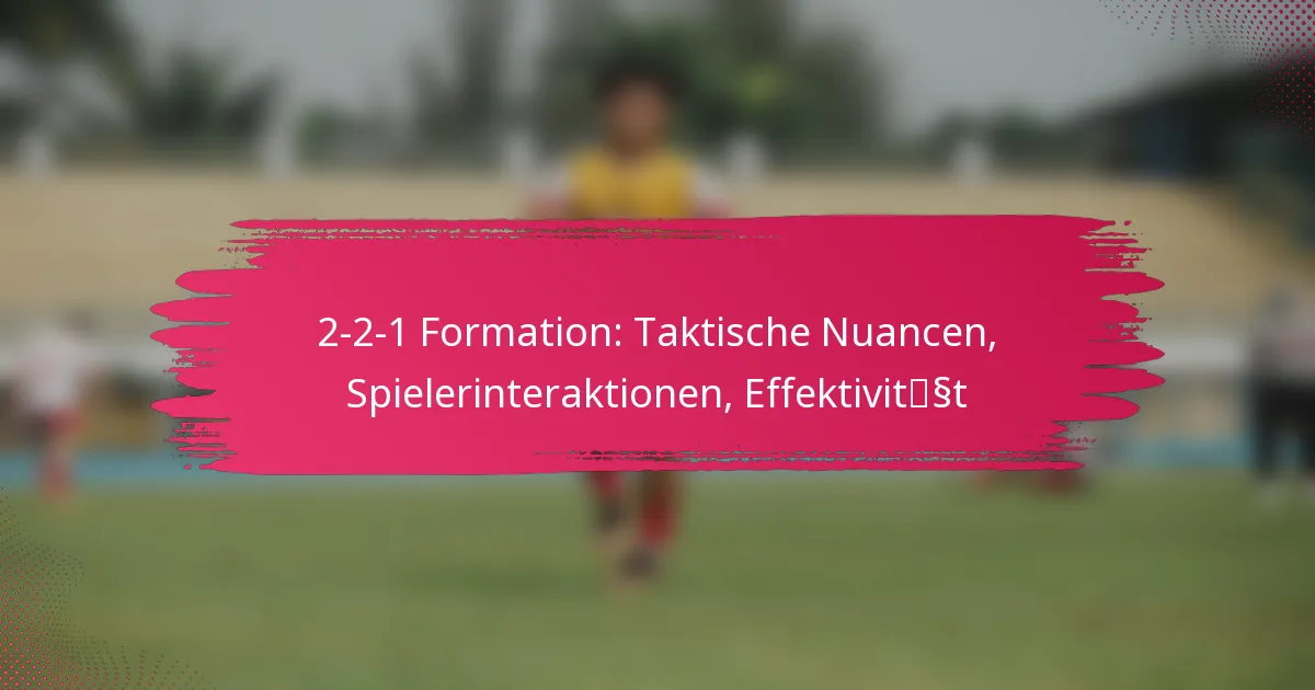 Die 2-2-1-Formation ist eine taktische Anordnung, die aus zwei Verteidigern, zwei Mittelfeldspielern und einem Stürmer besteht und darauf abzielt, ein Gleichgewicht zwischen Verteidigung und Angriff zu schaffen. Diese Struktur erleichtert nicht nur eine effektive Ballkontrolle und Übergangsspiel, sondern verbessert auch das Raummanagement, sodass Teams ihre Strategien gegen verschiedene Gegner anpassen können. Das Verständnis der unterschiedlichen Rollen und Interaktionen der Spieler innerhalb dieser Formation ist entscheidend, um ihre Effektivität in verschiedenen Spielszenarien zu optimieren.